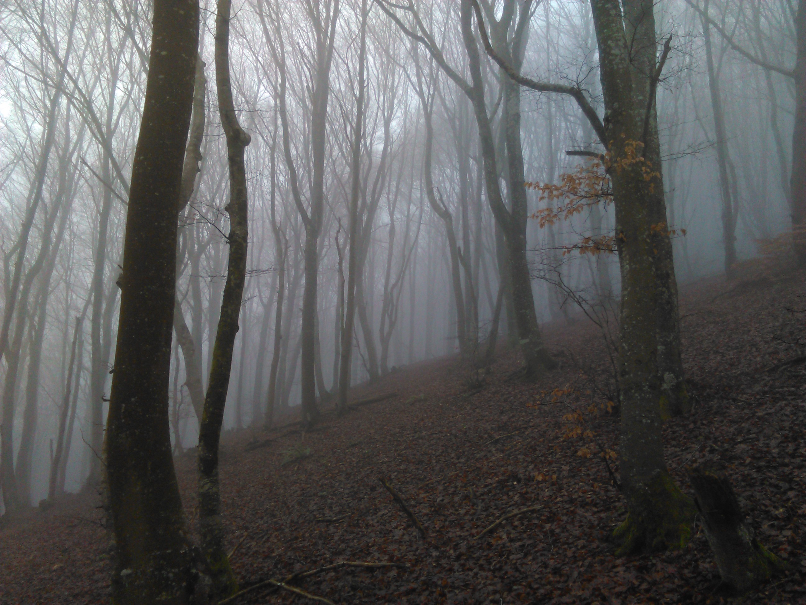 Hayedo entre nieblas de camino a la cima, vertiente N