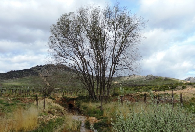 Paso del Arroyo de Tremonte sobre el camino con el Peñasco de Llamas y la Peña de la Llera al fondo