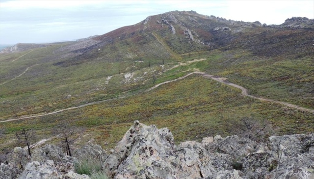 Vista de la Peña del Ave desde la cima de la Peña del Cuervo en el Serrato los Cabritos