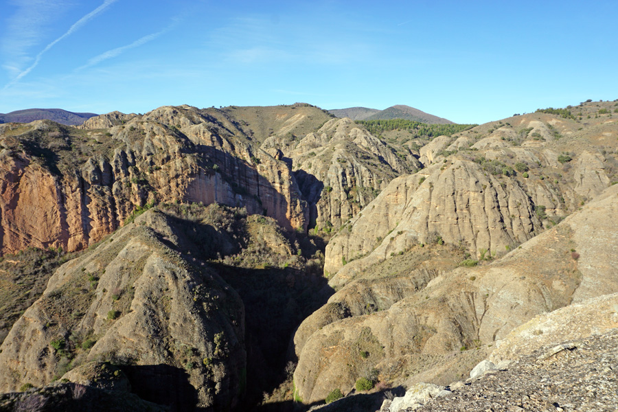 Peña Moya sobre el barranco de Badén. A la derecha en diagonal el barranco de los Infiernos