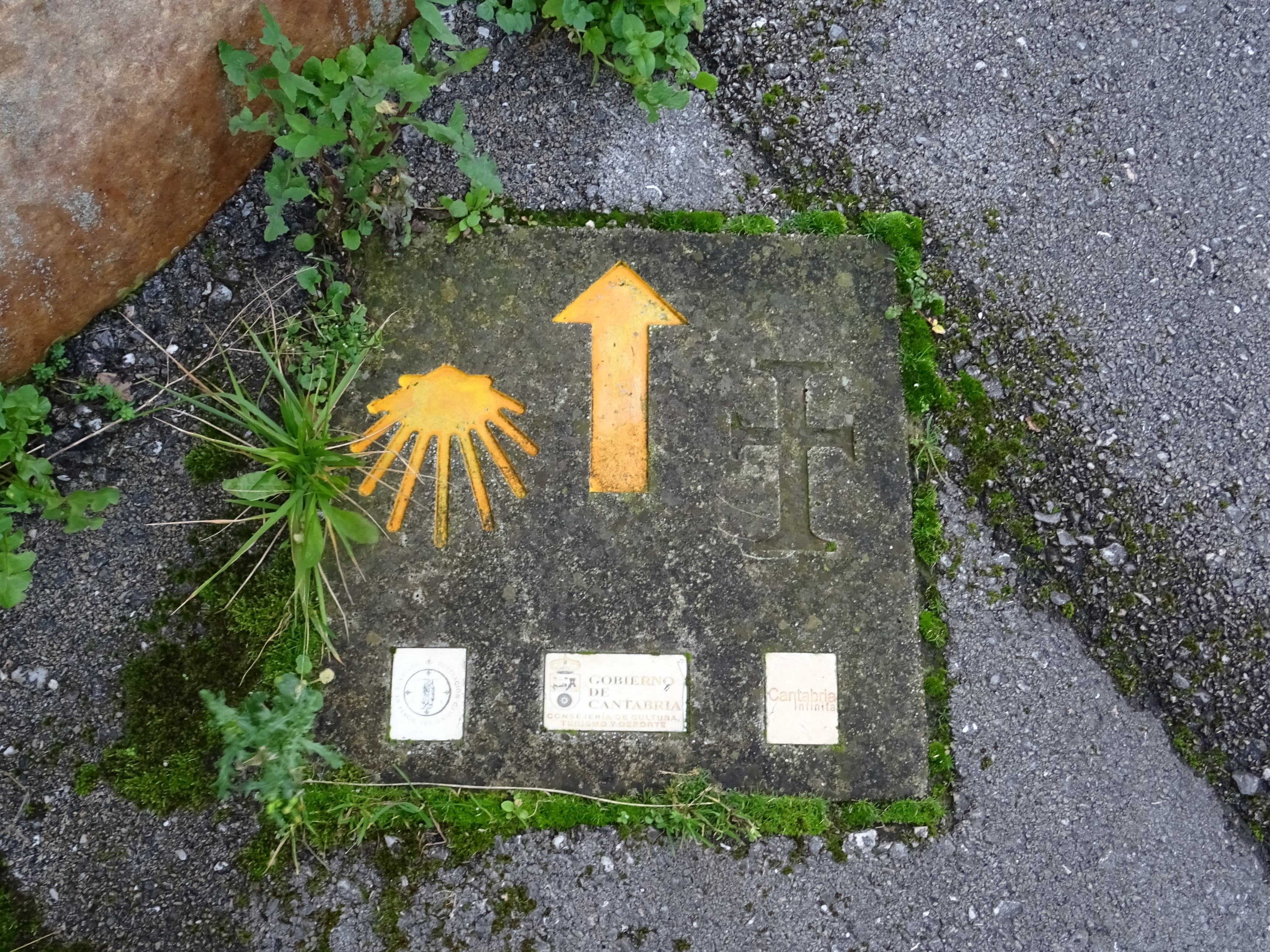 Señalética del Camino de Santiago en el suelo.