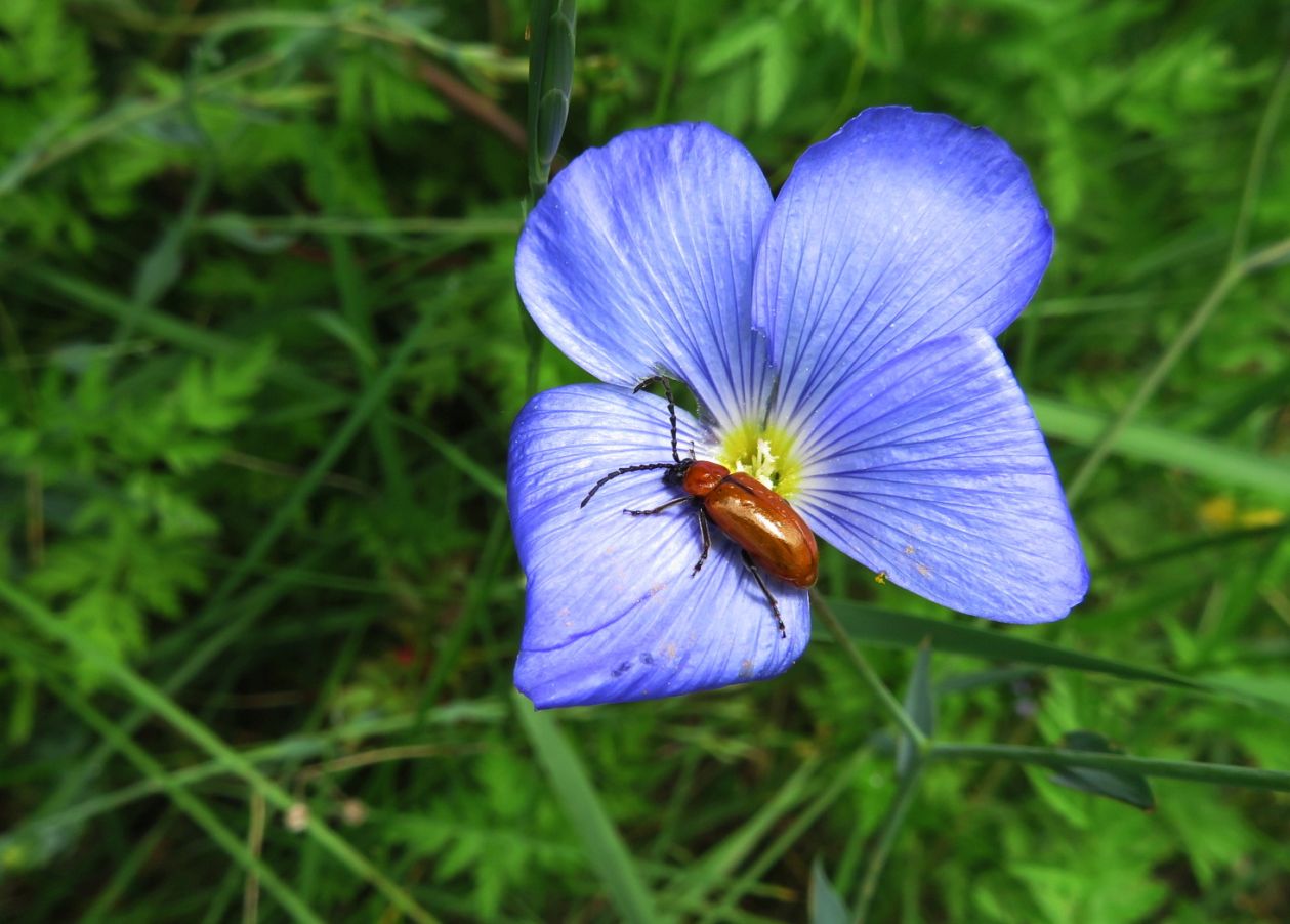 Peña La Isa (664 m) : Exosoma lusitanicum, un coleóptero muy común en nuestros montes, sobre lino azul