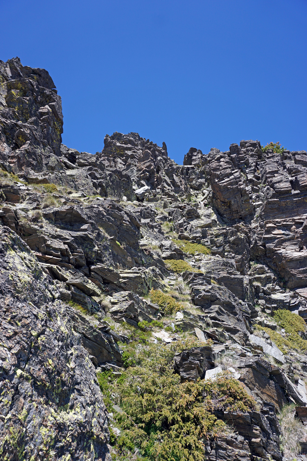 Roca Entravessada (2927 m) : La repisa expuesta sencilla que lleva a la canaleta