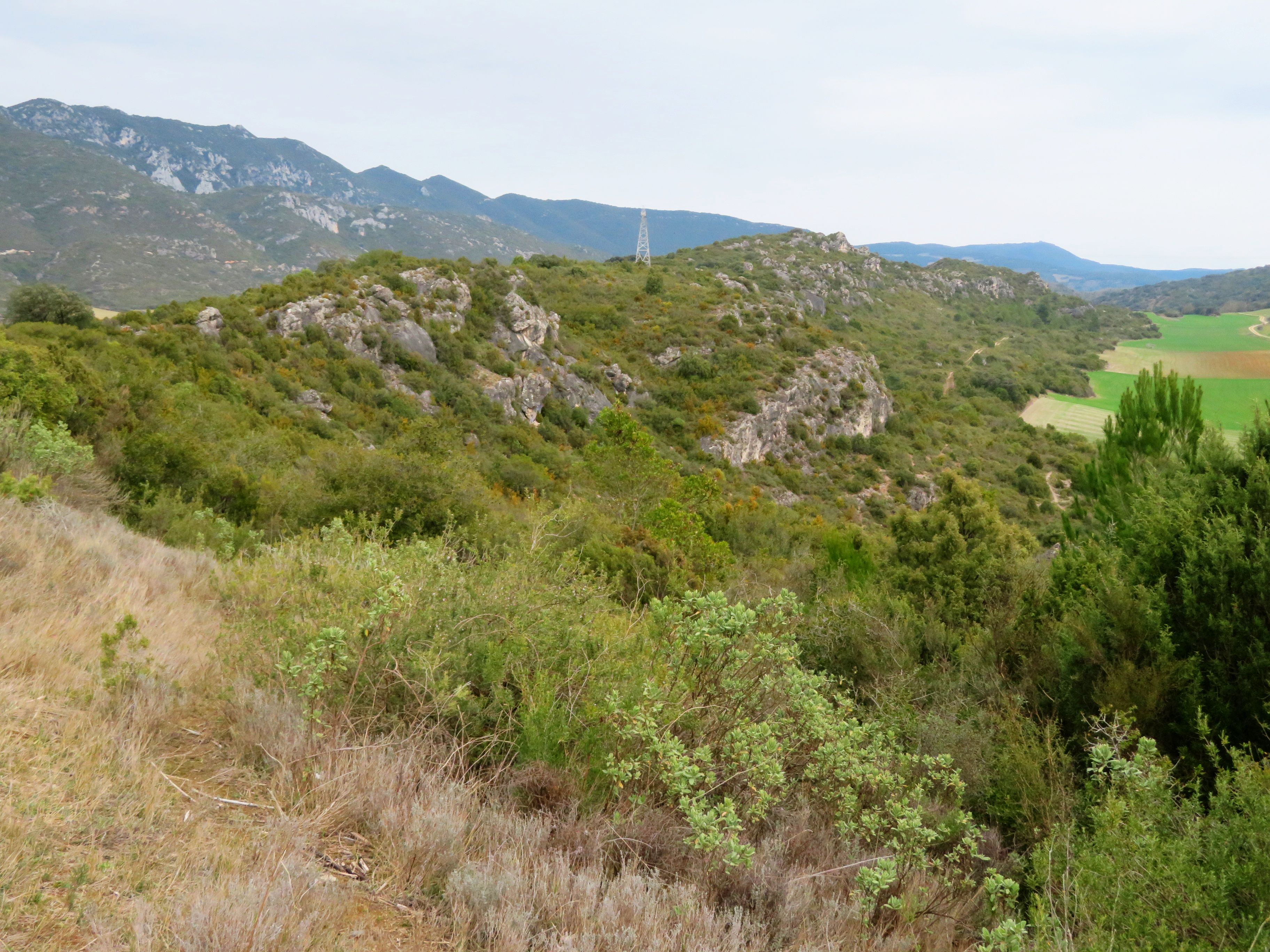 Karamatxeta (573 m) : La cresta desde el depósito al E hacia Karamatxeta, con la sierra de Portilla detrás