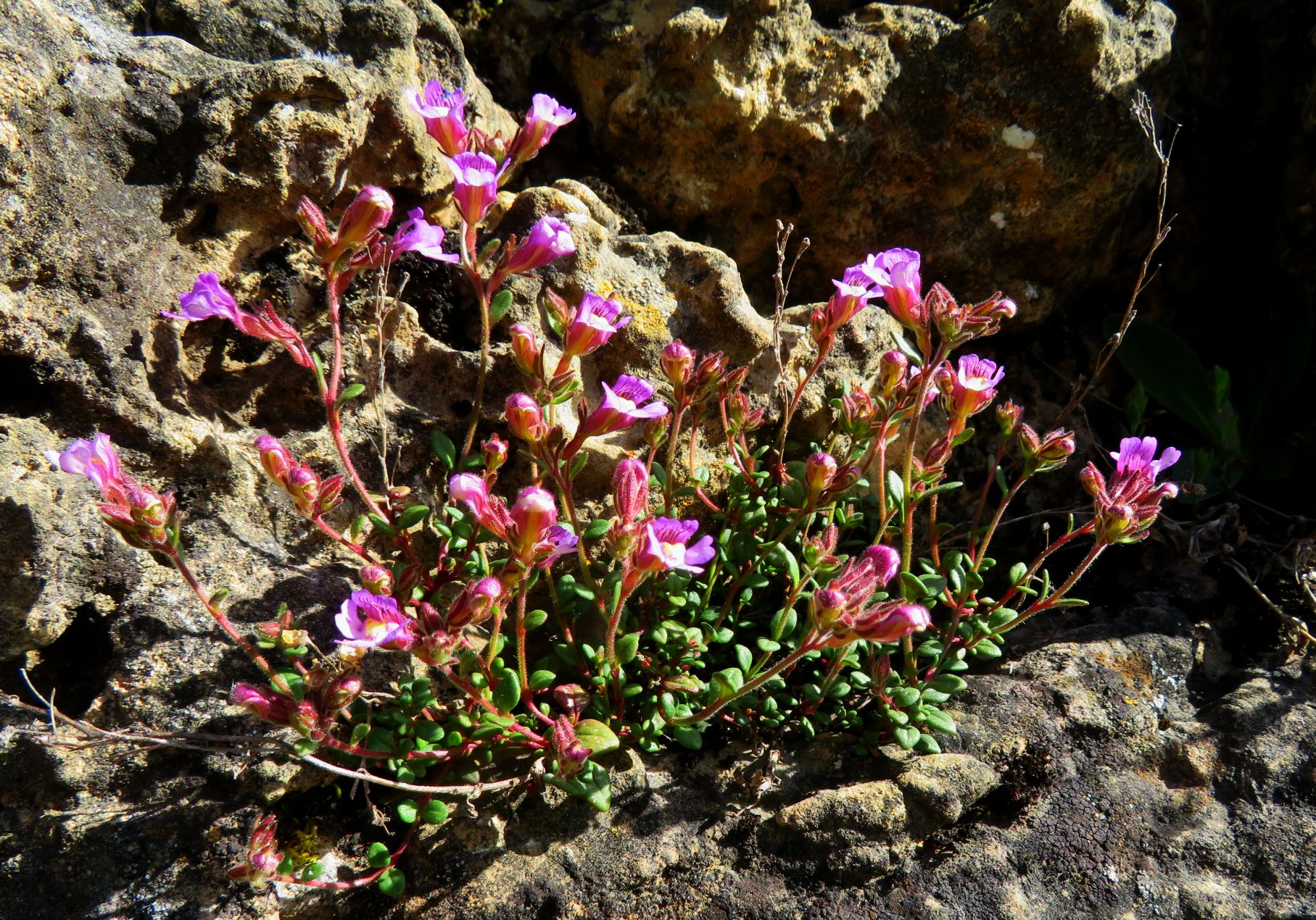 Chaenorhinum origanifolium, otra pequeña planta rupícola que coloniza el menhir de Riparasa