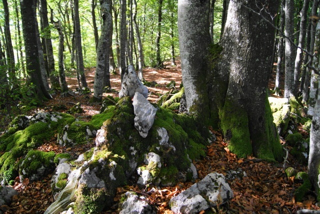 Hito en la boscosa cumbre