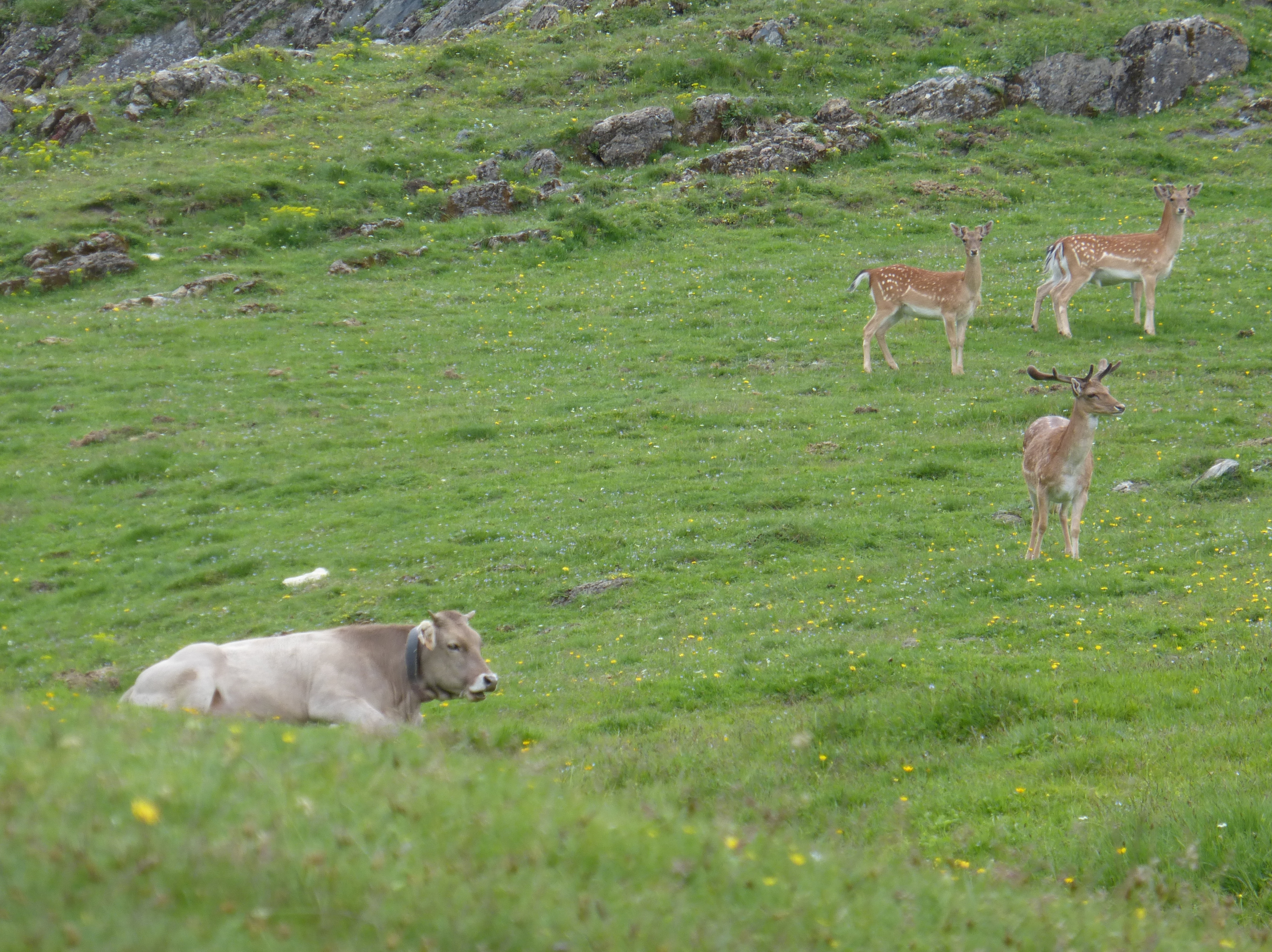 Vacas y gamos compartiendo pastos.