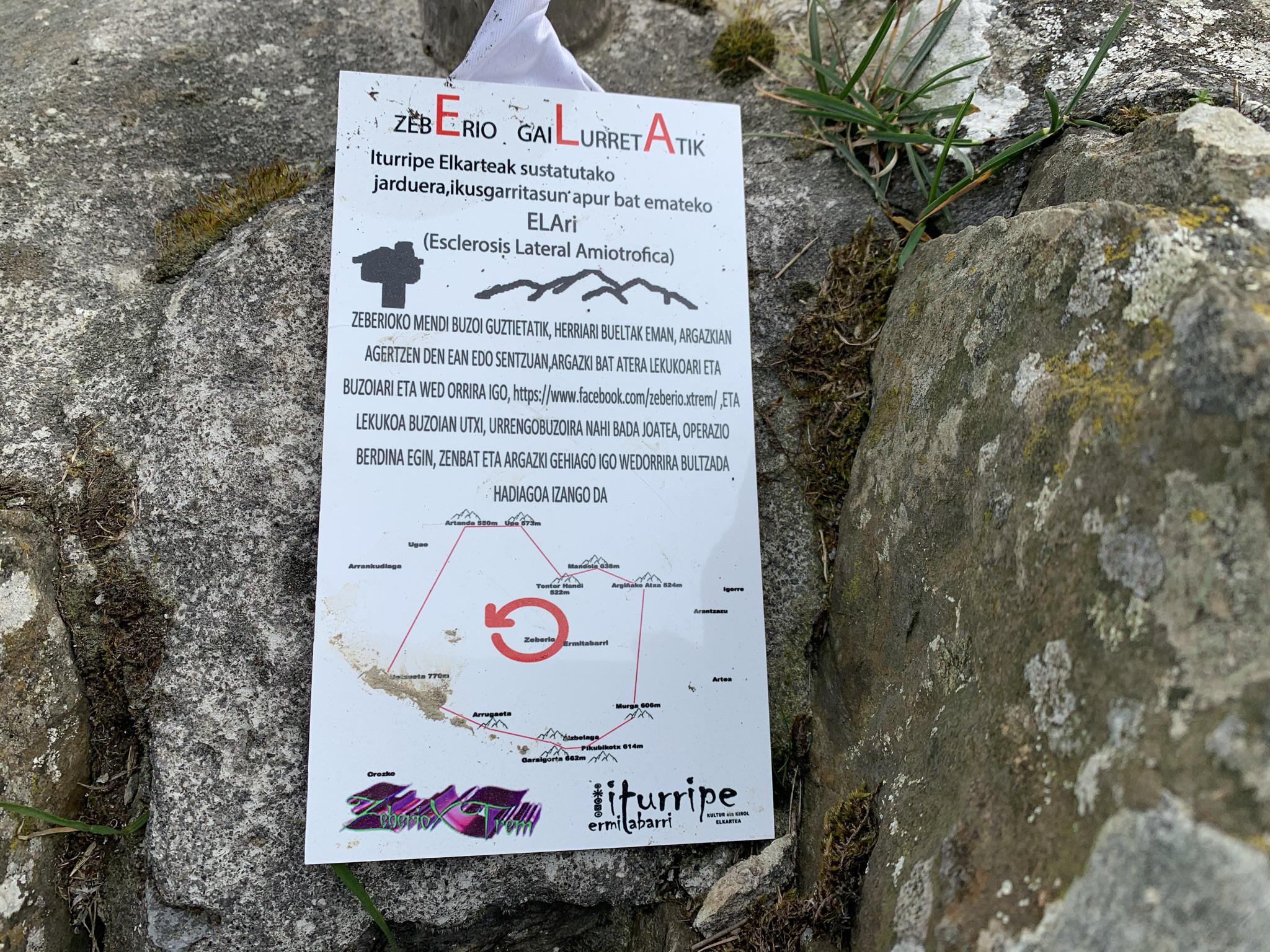 Texto de la tarjeta-testigo que, justo hoy, estaba en esta cumbre