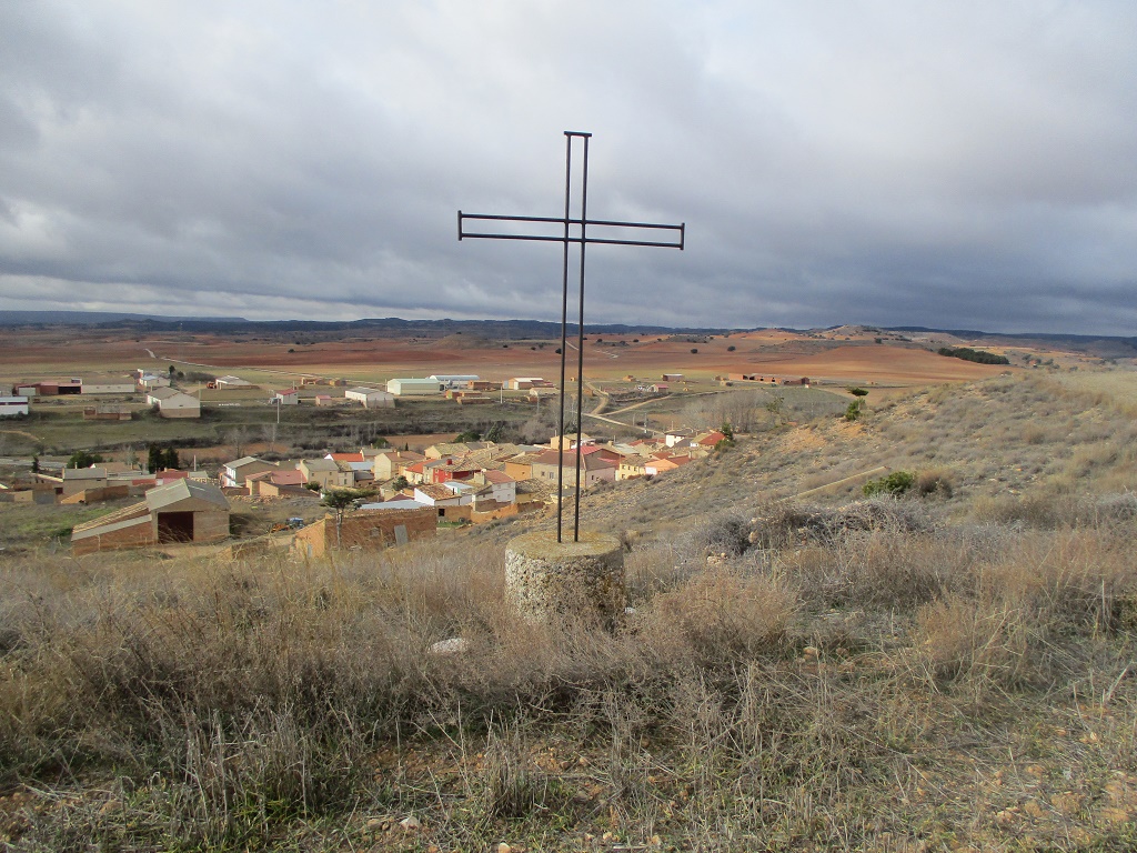 Cruz que da vista a Fuentelmonge, fabricada por un tal Igea el año 1991, según consta en su base.