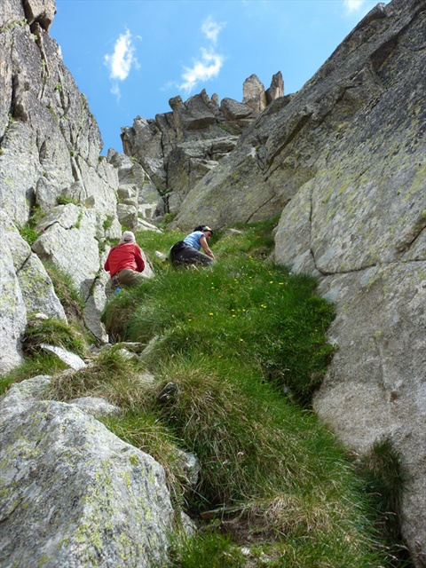 Ascenso por la zona herbosa de la canal