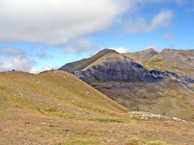 La pequeña colina cimera con el Tuc de Parros al fondo