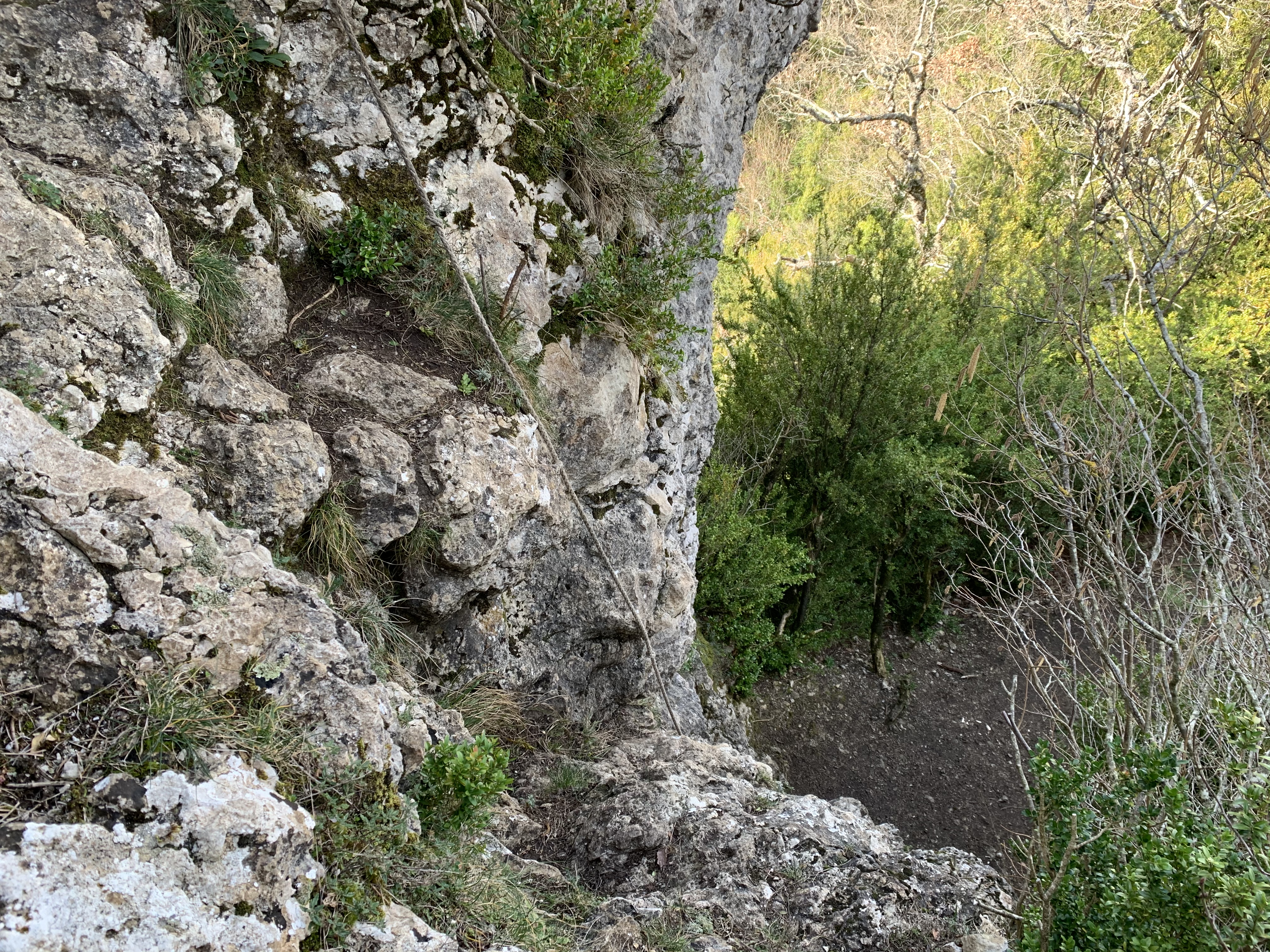 La cuerda no llega hasta la misma cima. Usa como anclaje un boj